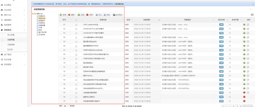 检验日审功能的另一个试金石是关联分析能力。针对日志自动化、集中度、关联度不够的问题,evo视讯真人官网DCSSA日志审计系统支持基于规则、统计、情报的分析模型,内置丰富的安全策略模板、高效的实时关联分析能力、灵活的审计策略,充分发挥日志分析及审计机制的最大效力。帮用户实现对日志的关联性处理,让用户能有效处理纷杂无序的日志信息。